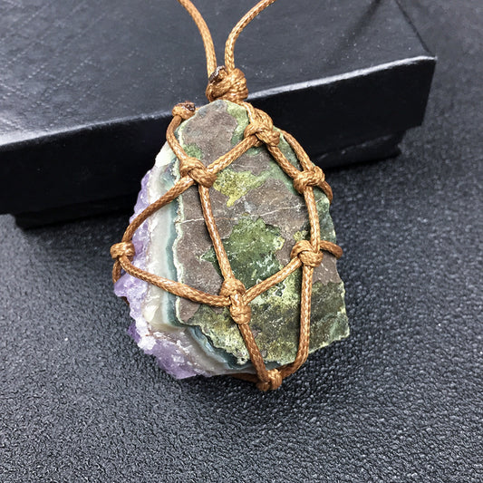 Natural Uruguay Amethyst Cluster Rough Stone Pendant Amethyst Rough Stone Woven Necklace