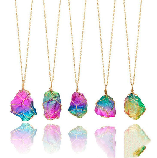 Seven-Color Natural Stone Rough Stone Winding Crystal Pendant Transparent Multi-Color Stone Chain Necklace Necklace