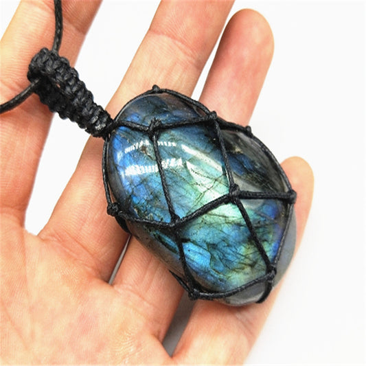 Labradorite Natural Stone Pendant Wrap Braid Necklace Macrame