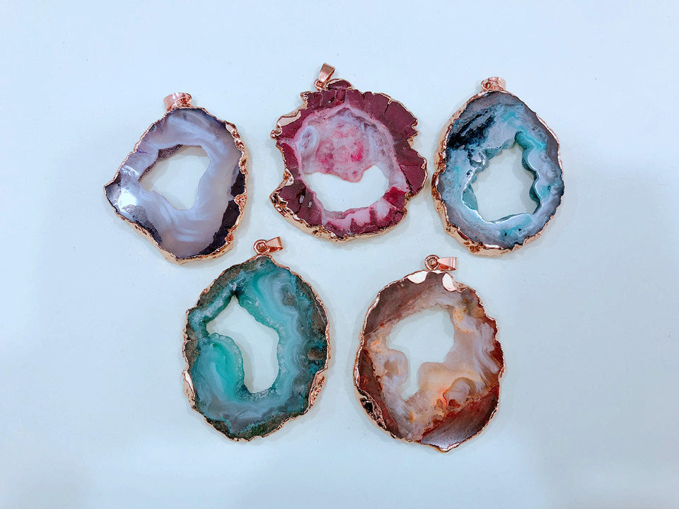 Natural Stone Pendant Rough Stone Cluster Striped Agate Crystal Hole Necklace