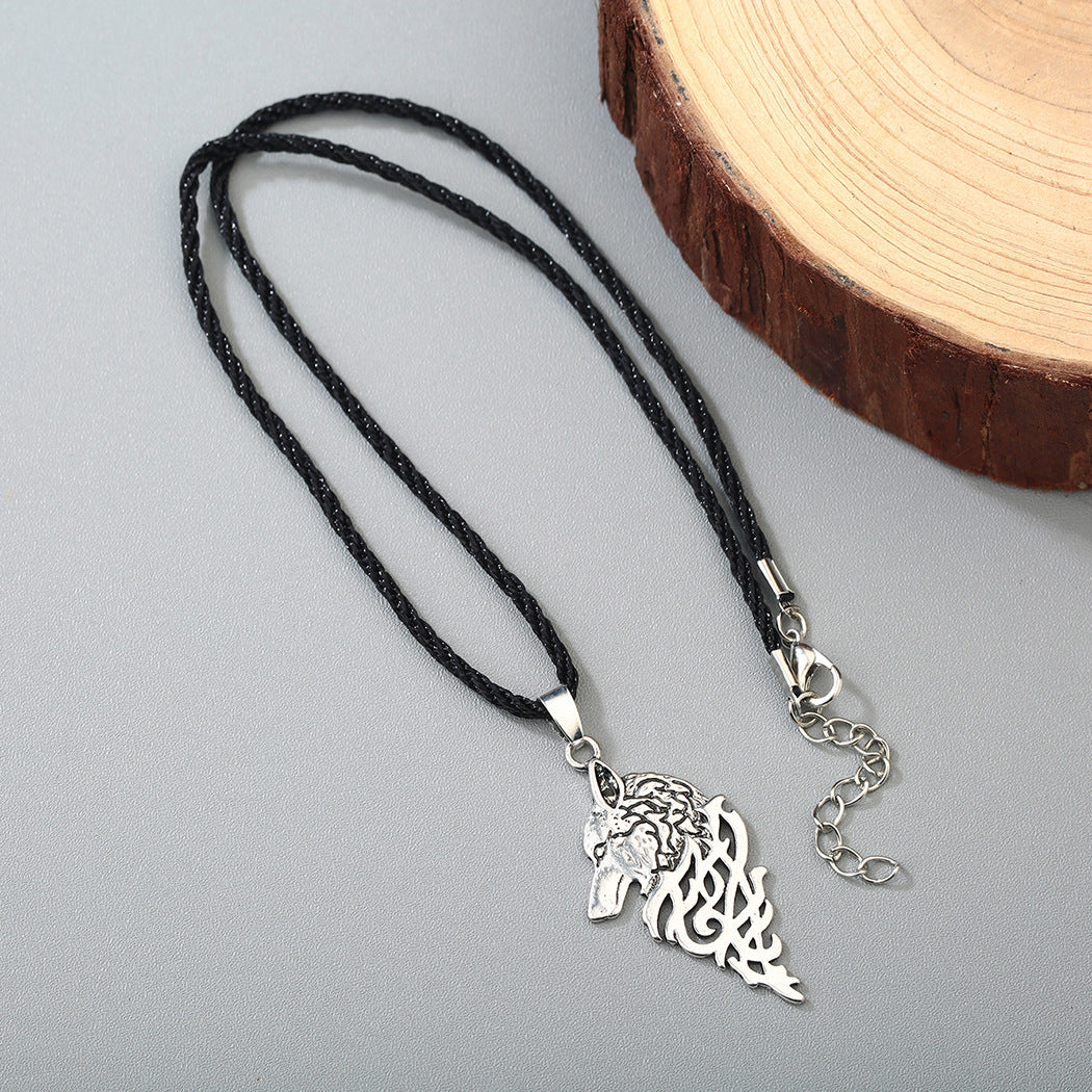 Vintage Ancient Silver Animal Wolf Pendant Necklace